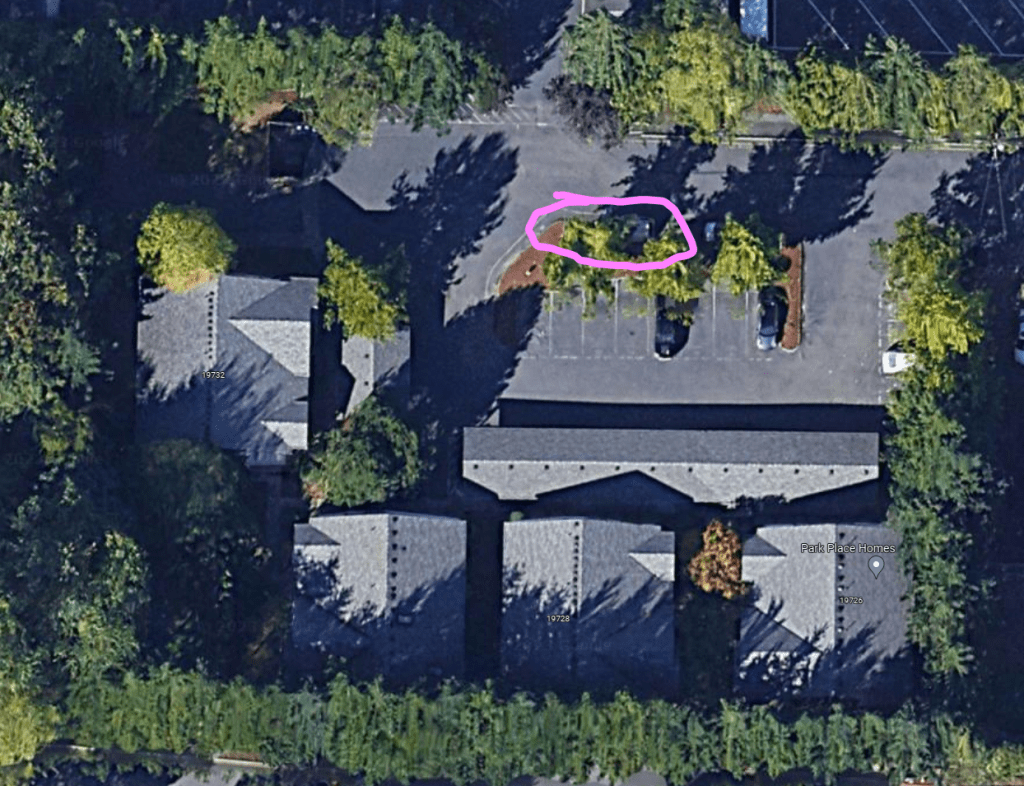 The parking spots circled in pink belong to me and are rarely used as I only have one car. The spot is rather long and should be able to squeeze 2 cars in, feel free to steal this spot if you find your spot unexpectedly occupied, but we will be working to ensure all impacted residents are warned ahead of time that we need their spots.